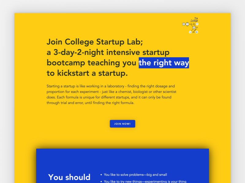 College startup lab is a 3-day intensive startup bootcamp that teaches participant the right way to build a startup.