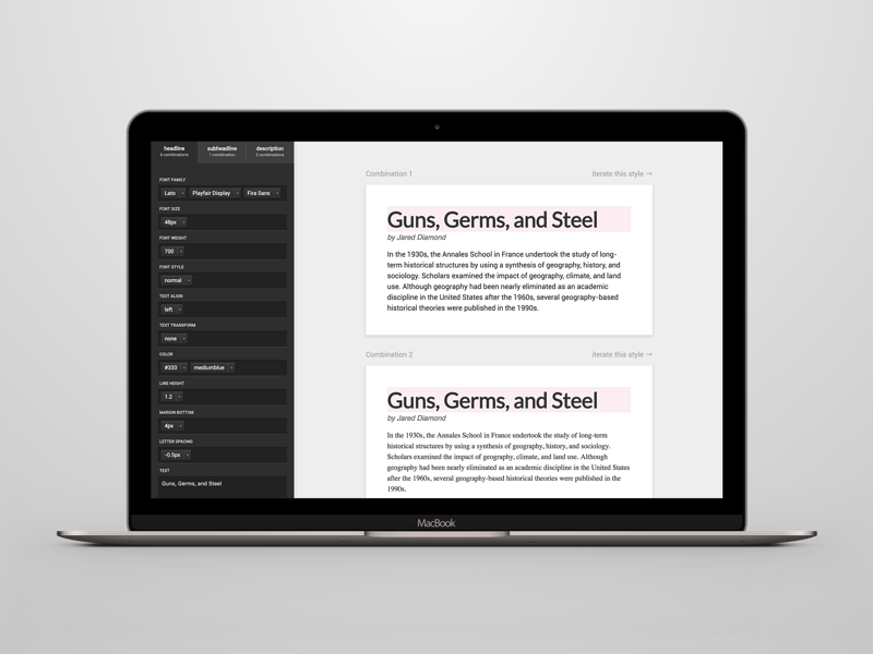 A web app that generates typography combination based on your input. I made this product to help me speed up my process of finding the perfect typography.